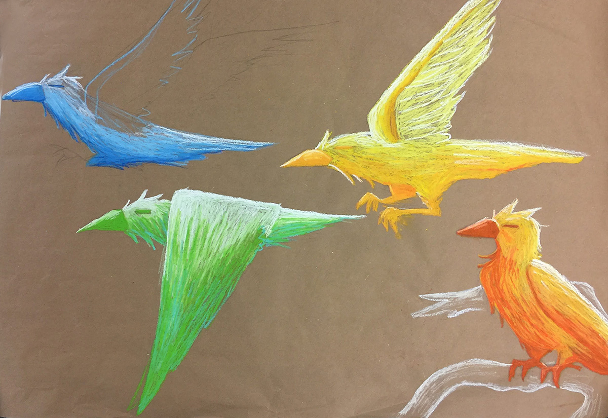 This was a year of challenges and experimentation in Art Class at Main Street Scholars. Covid took us into a different learning environment, where all lessons were taught over Zoom. We decided to focus on inspiration, and our own styles and interests, rather than technique, reflecting upon the work of well-known artists, then incorporating aspects of that artist’s work into our own.