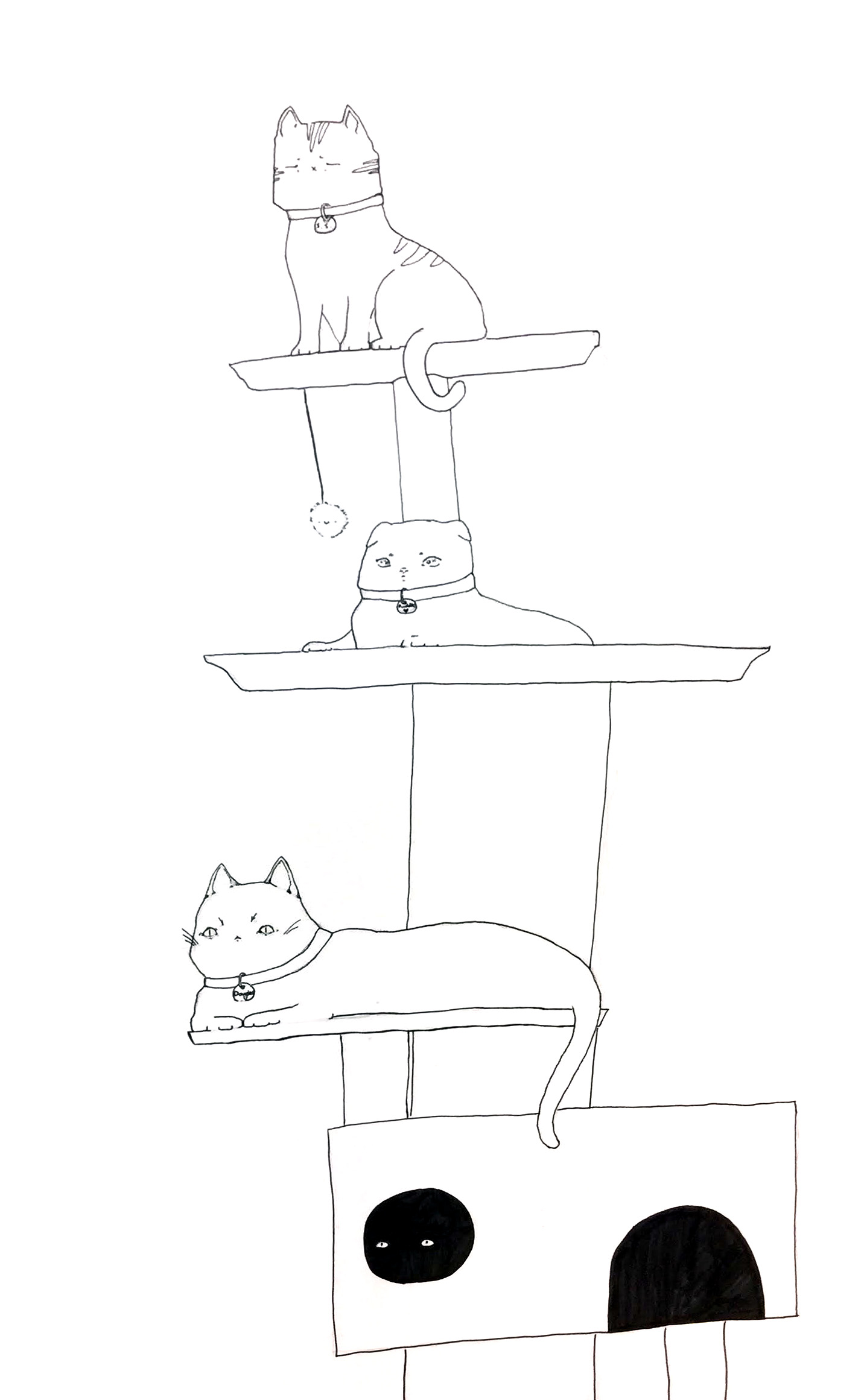 The box-oriented work of Louise Nevelson and Joseph Cornell inspired this monochrome shadow box created by Elsa. She used a carboard box, paper and scissors to complete this three-dimensional work.